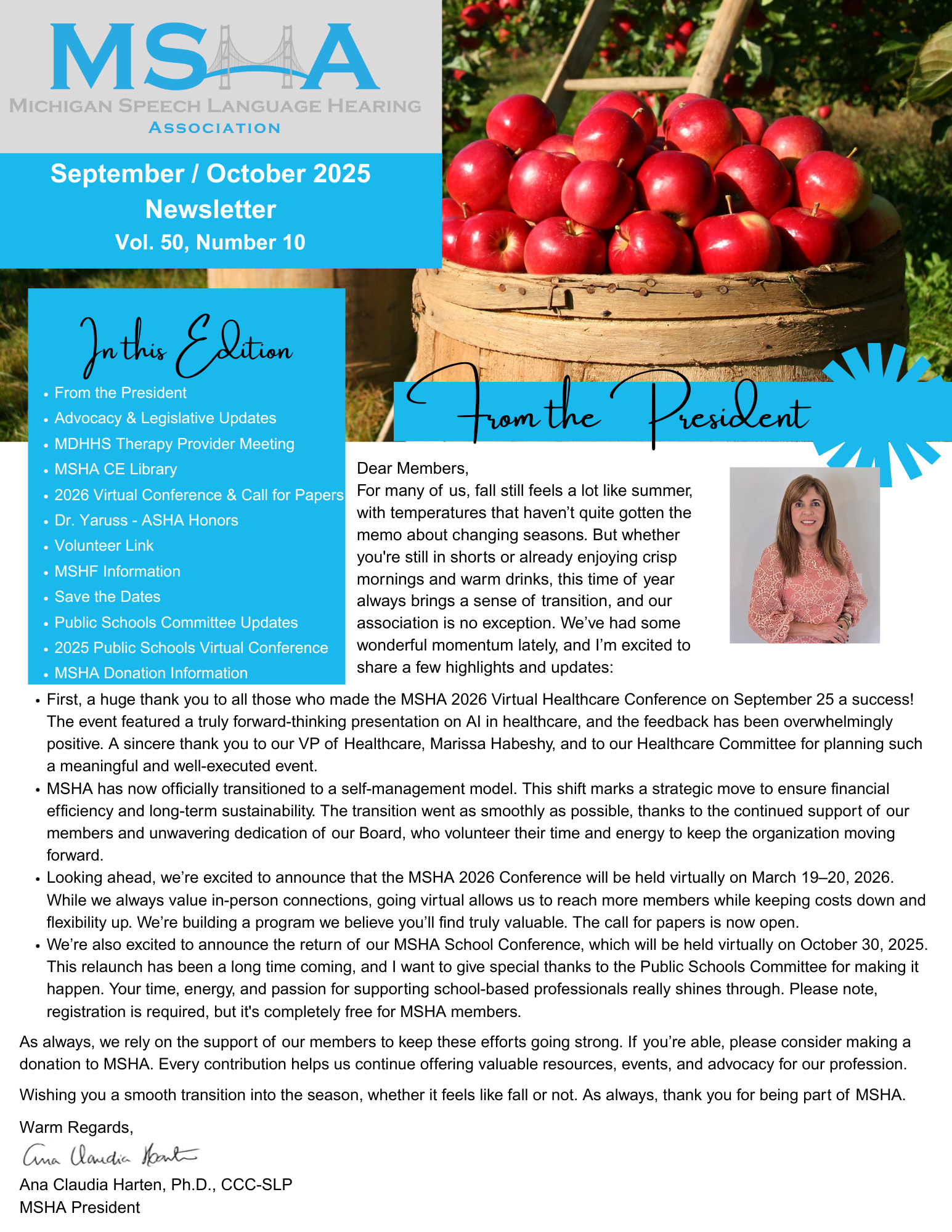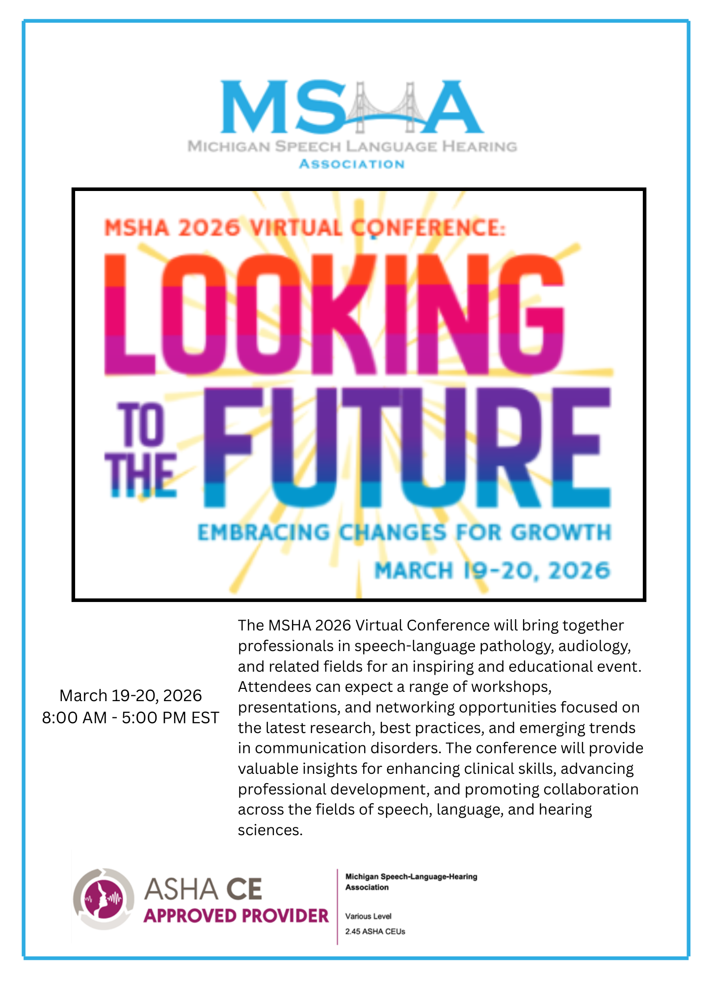 Michigan Speech Language Hearing Association | P.O. Box 45, Buchanan, Michigan 49107-9998 | info@mislha.org
