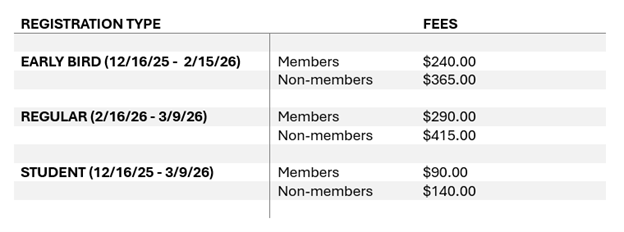 Click to Register!Registration opens December 16, 2025 and closes March 9, 2026!